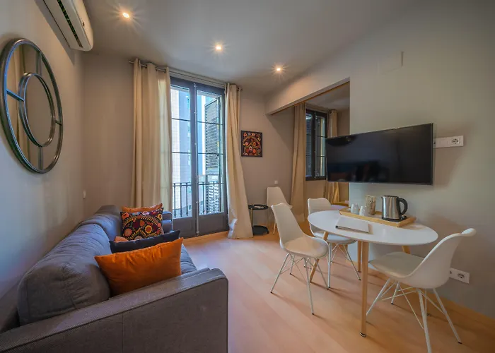 Bonavista Apartments - Eixample Barcellona, di 40 m², si trova nel distretto Raval e offre un rapido accesso alla Casa Batlló, che si trova a soli 8 minuti a piedi. Situato a una distanza di 1 km dal Barri Gòtic, quest'appartamento offre l'accesso a utili servizi di pulizia, come un essiccatore e lavatrici e asciugatrici.